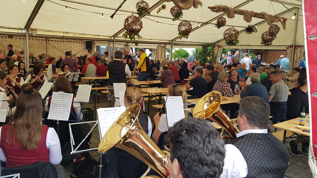 Am Vatertag machten sich die Musikerinnen und Musiker nach 2 Jahren Corona-Pause endlich wieder auf den Weg nach Wagshurst. Nach einer kurzweiligen Busfahrt unterhielten Sie die Gäste beim Vatertagsfest des Musikverein Harmonie Wagshurst von 11.30 Uhr bis 13.30 Uhr mit einem abwechslungsreichen Unterhaltungsprogramm. Der Musikverein erntete großen Applaus unter der Leitung von Martin Appenmaier.